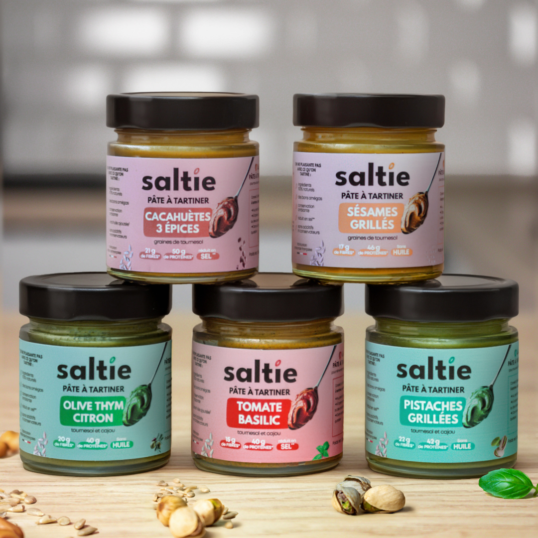 Mais pour aller encore plus loin, découvrez Saltie, la première pâte à tartiner salée, pensée pour vous accompagner du petit-déj à l’apéro.