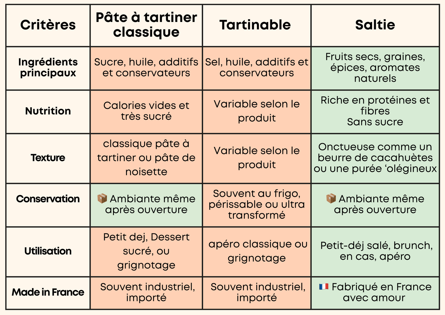 Pourquoi Saltie n’a rien à voir avec une pâte à tartiner classique ou un tartinable salé industriel.