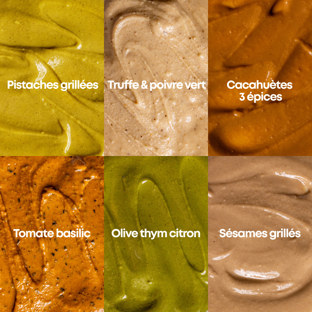 Nos pâtes à tartiner salées sont élaborées à partir d’ingrédients simples, naturels, et riches en bienfaits nutritionnels.